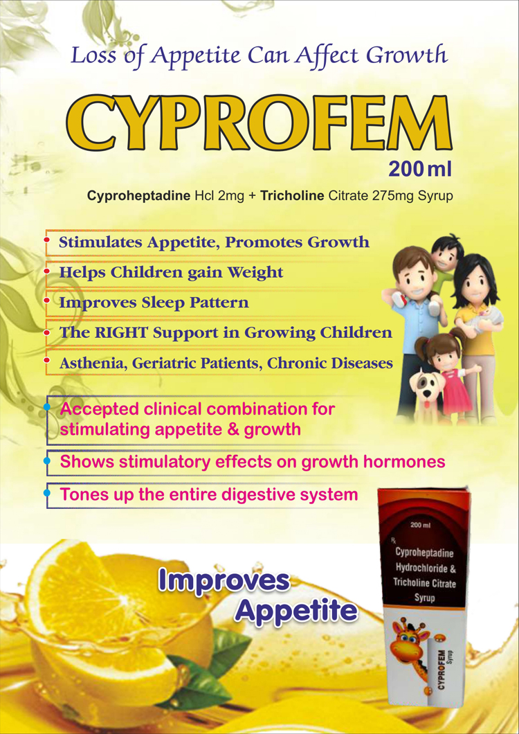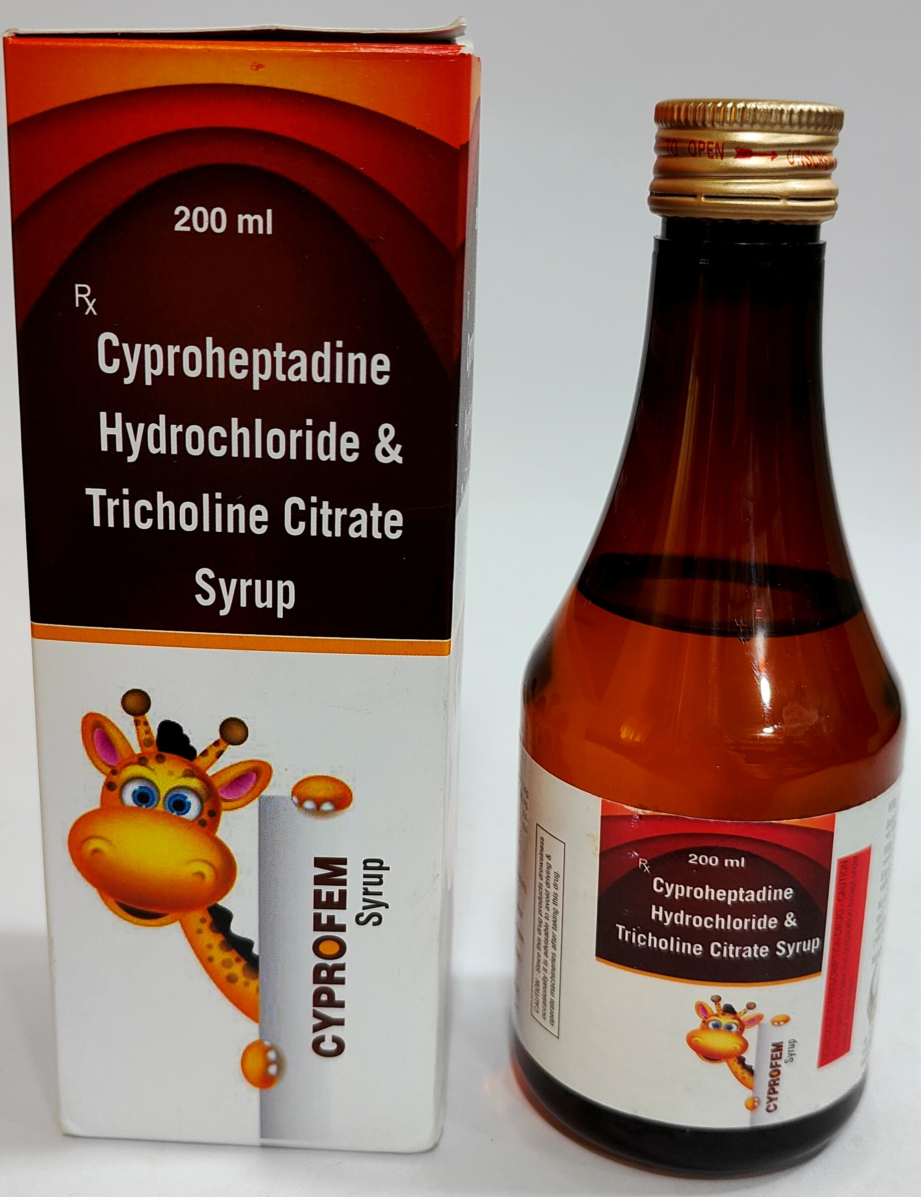 164 | CYPROFEM SYRUP | CYPROHEPTADINE HYDROCHLORIDE 2 mg + TRICHOLINE CITRATE 275 mg SYRUP |