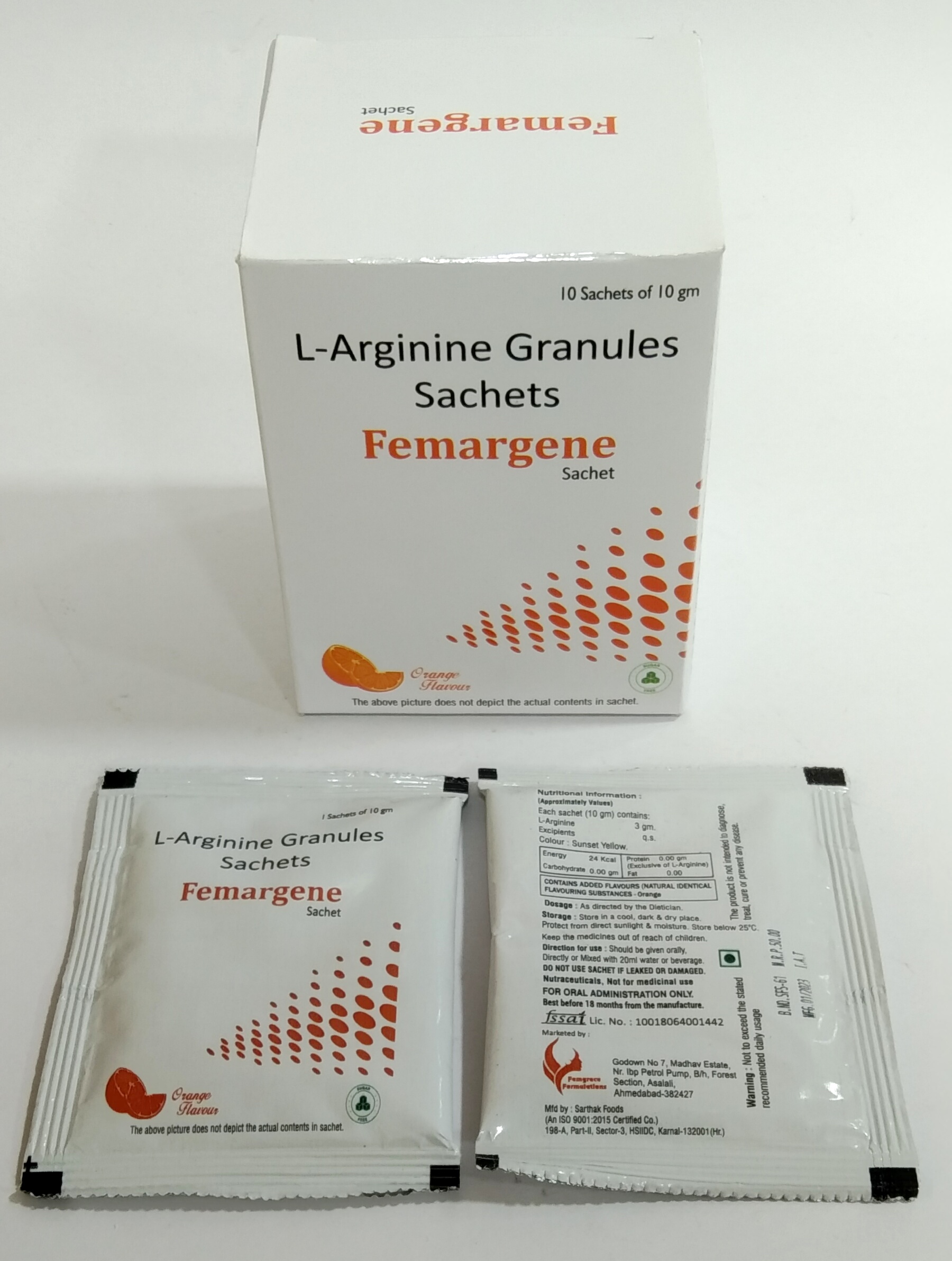 156 | FEMARGENE SACHET (CRANBERRY FLAVOUR) | L-ARGININE 3 GM + ZINC 10MG + FOLIC ACID 2.5 MG | 10X10 GM | View.. | View.. |